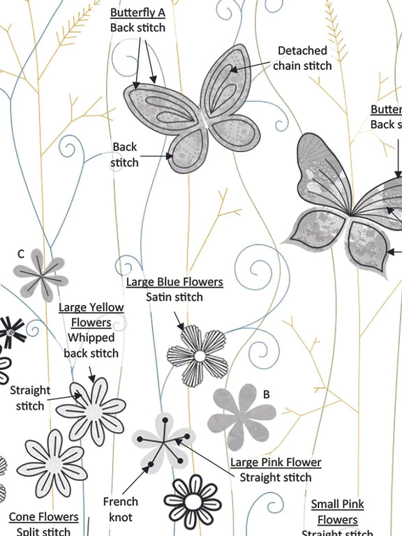 Learn how to use simple hand embroidery stitches to create this beautiful meadow, which has been designed in collaboration with ©Bug Art Ltd. Whether you are a beginner wanting to dip your toes into the world of embroidery, or a more advancer stitcher looking for a new project, the kits are designed to give you a relaxing stitching experience where you can enjoy some ‘me time’ and lose yourself in the process, with the bonus of having something beautiful at the end of it, which you can continue to enjoy!