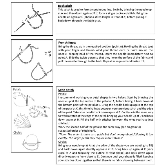 The instructions are there as a guide, including labelled diagrams and a comprehensive stitch glossary, making the kit suitable for those wanting to build their confidence. However, the kit can also act as a springboard to experiment with your own ideas for those who are more advanced.