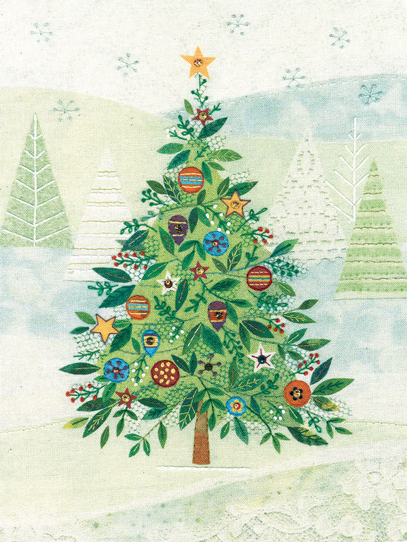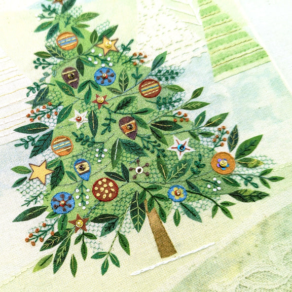 Learn how to use simple hand embroidery stitches and add embellishments to create this twinkling Christmas tree, which has been designed in collaboration with ©Bug Art Ltd.