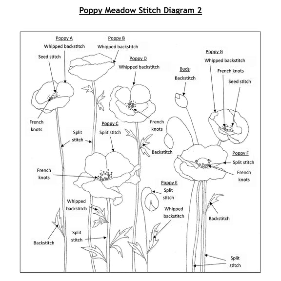 Whether you are a beginner wanting to dip your toes into the world of embroidery, or a more advancer stitcher looking for a new project, learn how to use simple hand embroidery stitches to create this beautiful poppy meadow.