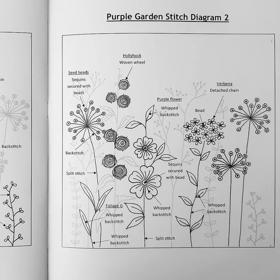 The embroidery gives you the chance to learn and practice an interesting variety of stitches including split stitch, detached chain stitch and back stitch, along with French knots and woven wheels. If you are new to stitching don’t worry as the illustrated Stitch Glossary is there to guide you through each stitch step by step, alongside full written directions and clear labelled diagrams showing where the different stitches are used.