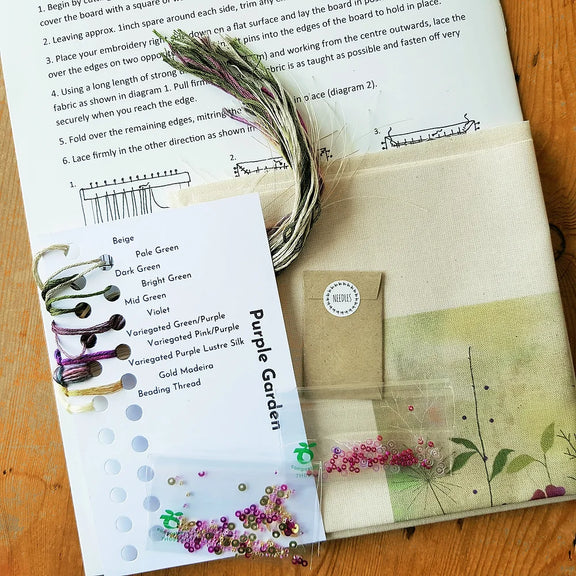 The background and lines to follow come pre printed onto the fabric so there is no need for tracing and everything you need is included ready for you to get stitching.