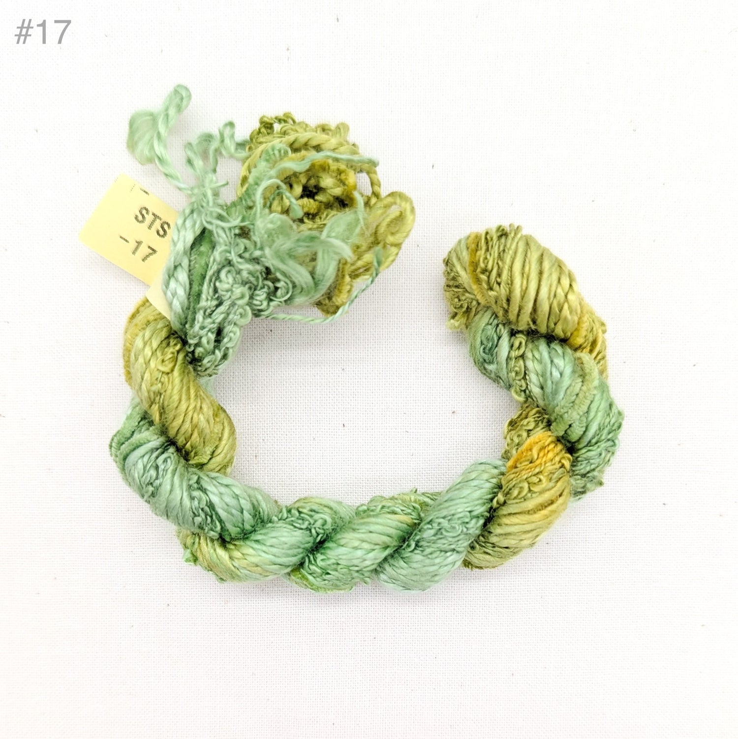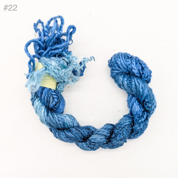 • 2.5/1 Spun Silk (a fairly thick round lustrous silk yarn)