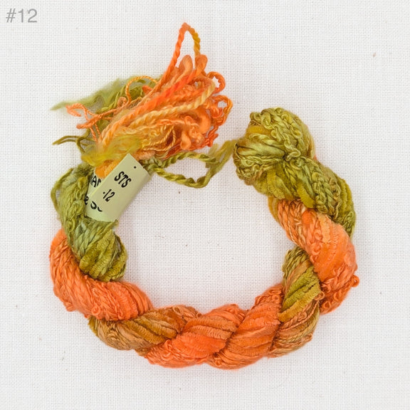 • Spun Silk with Flames. (a medium thickness textured silk thread)