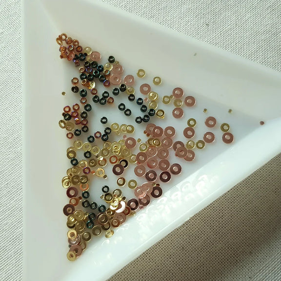 Illustrated, step by step instructions guide you through how to use stranded cottons and silks to build up the design using a variety of interesting stitches including back stitch, chain stitch, woven wheel and Turkey stitch, the latter of which creates a wonderful loopy texture! You will also be guided through the process of adding a subtle sparkle to your work by using seed beads to anchor down delicate sequins and incorporating fine gold thread into your stitches.